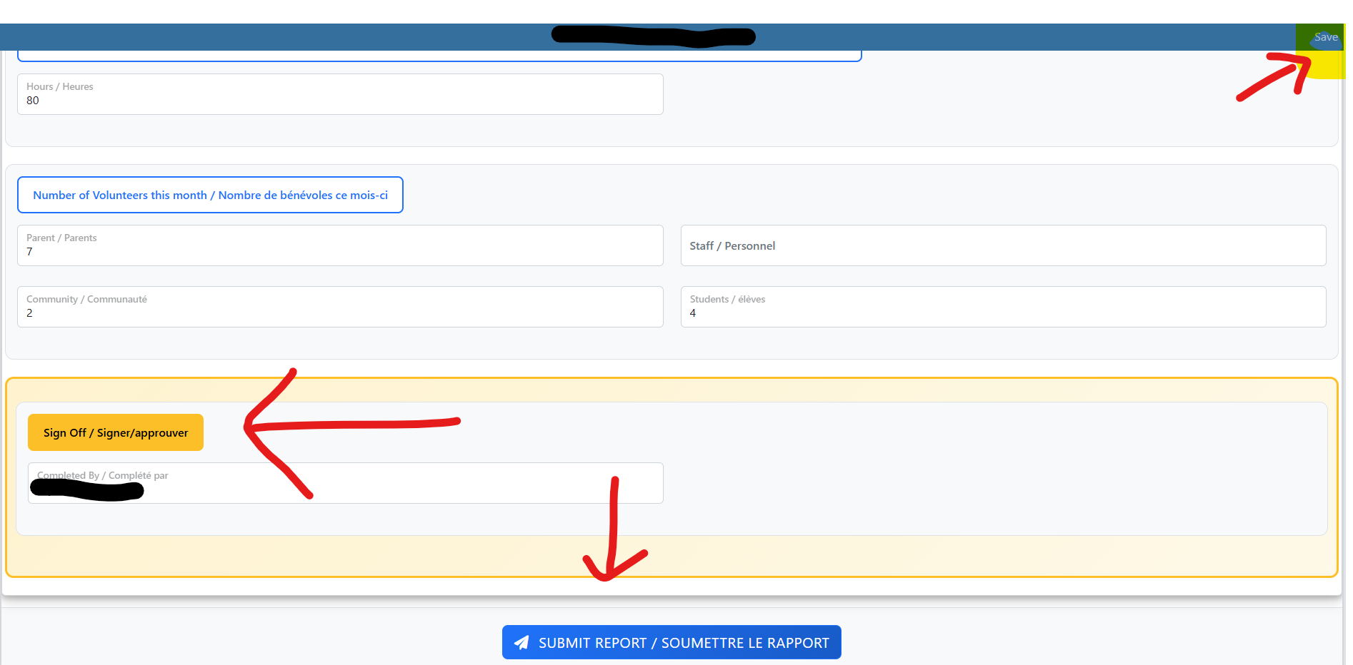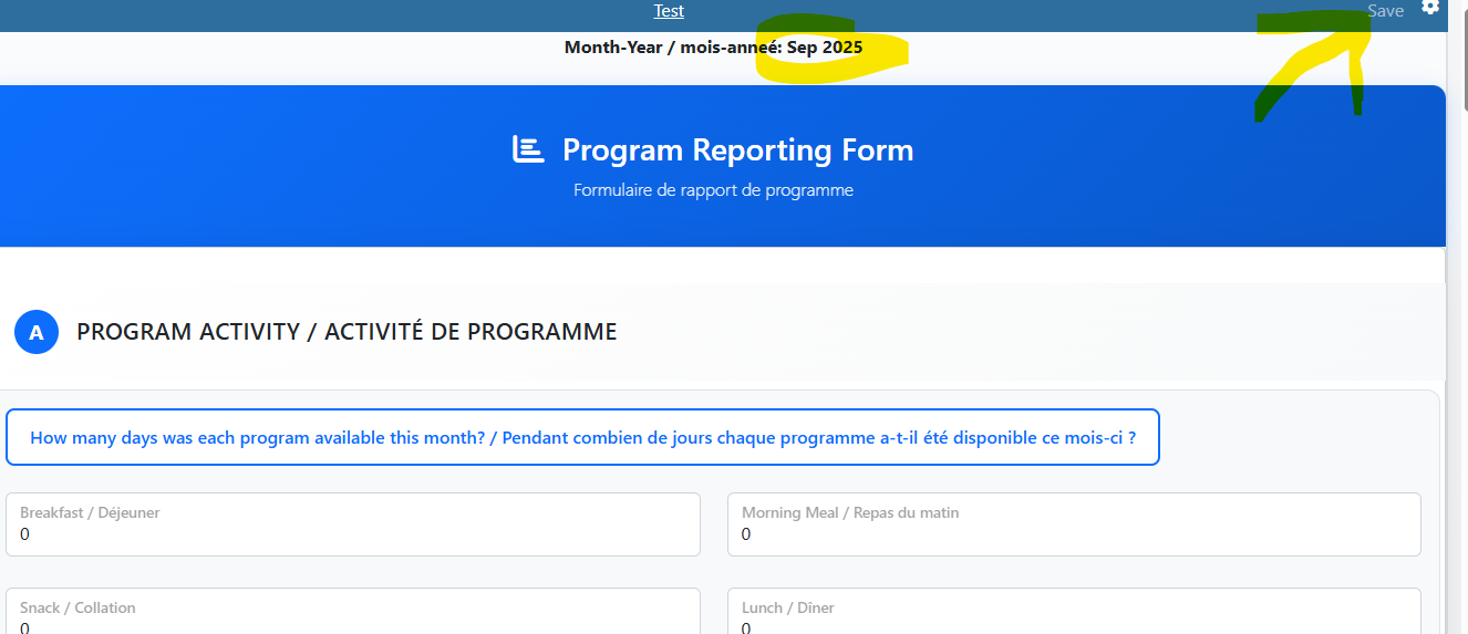 - Don’t forget to click Submit Report at the bottom of the Program Reporting Form, and Save at the top right corner of the to save your monthly Program Reporting Form.