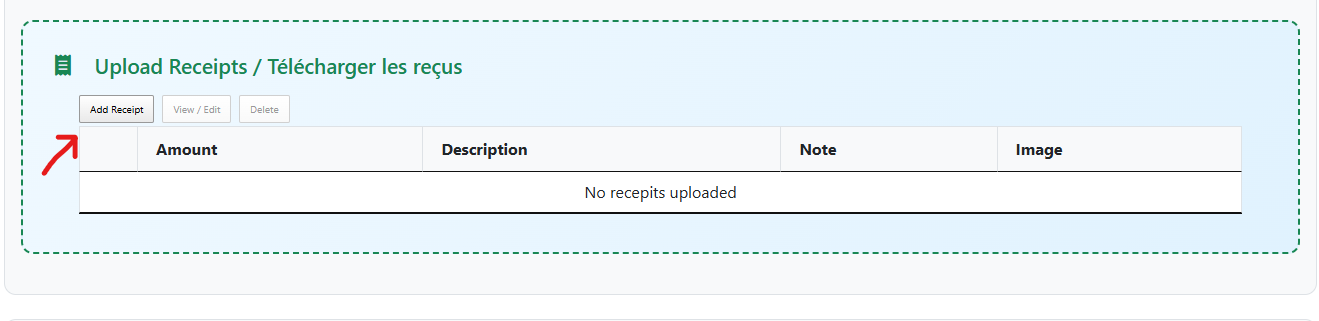 - Click on the Add Receipt button in your Monthly Program Reporting Form
