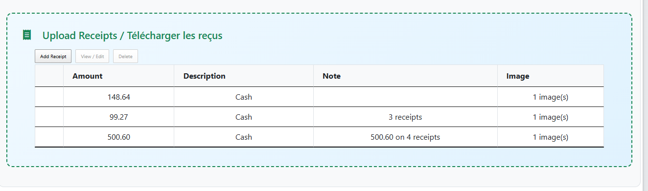 - Note: We suggest that you enter the month you are submitting receipts for, or some other identifier, in the Note section to help you keep track. Please don’t send messages to us through this note section – there is no guarantee that we will see it in a timely manner. This is for notes to help you manage your receipt submissions.